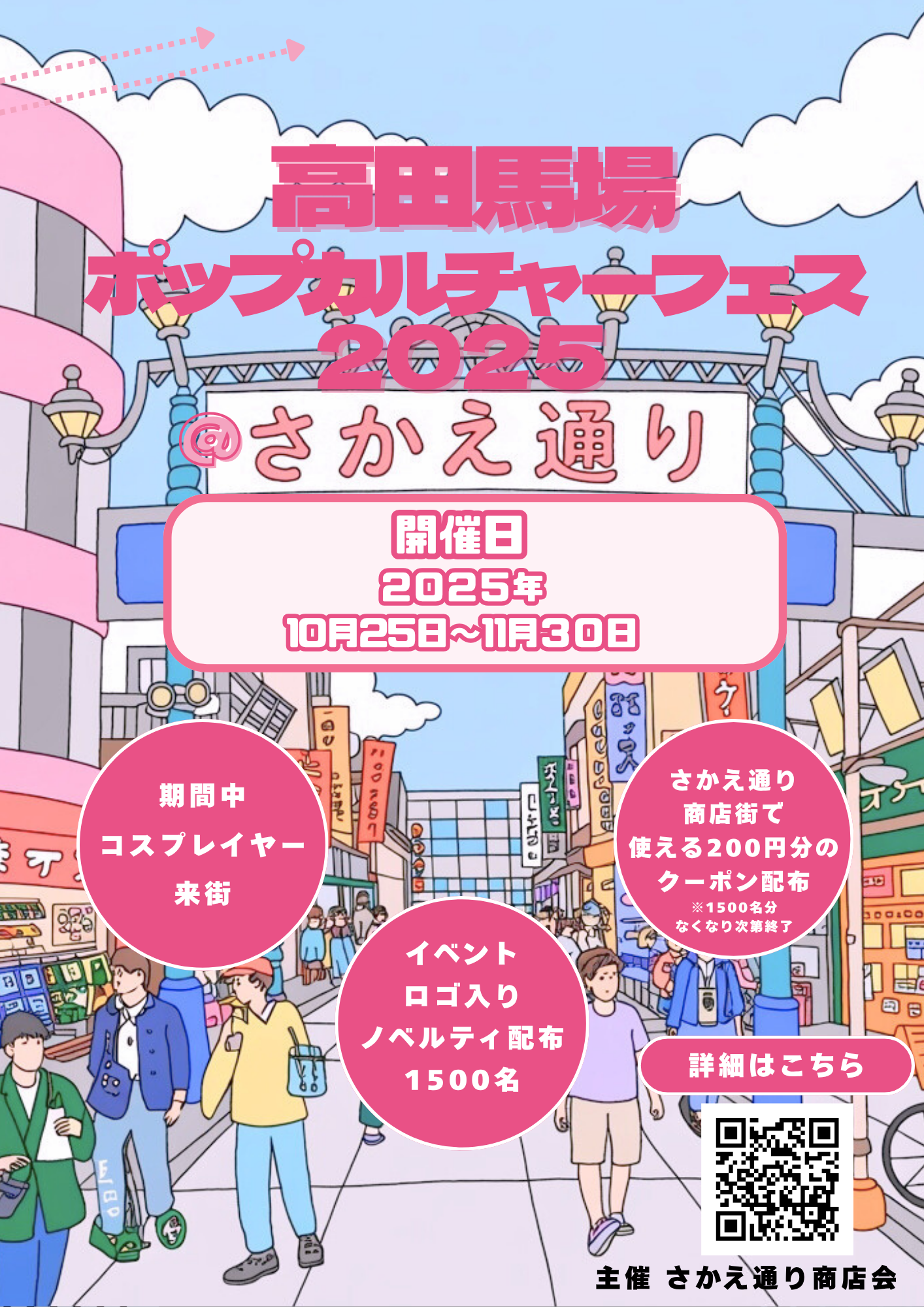 高田馬場ポップカルチャーフェスでは、期間中 対象店舗にて おかいもの or 飲食をされた方を対象にクーポン券をお配りしています。